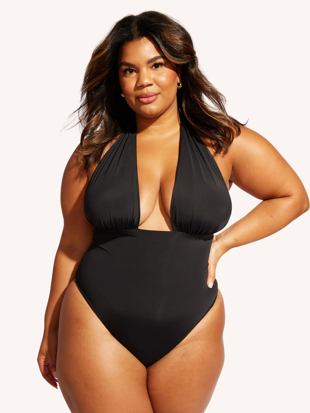 The Isle One Piece is an elevated halter swimsuit with a sleek silhouette and modern design. The updated classic suit is crafted with our biodegradable fabric. It is a four-in-one swimsuit thanks to its reversibility and halter cross-strapping detail.